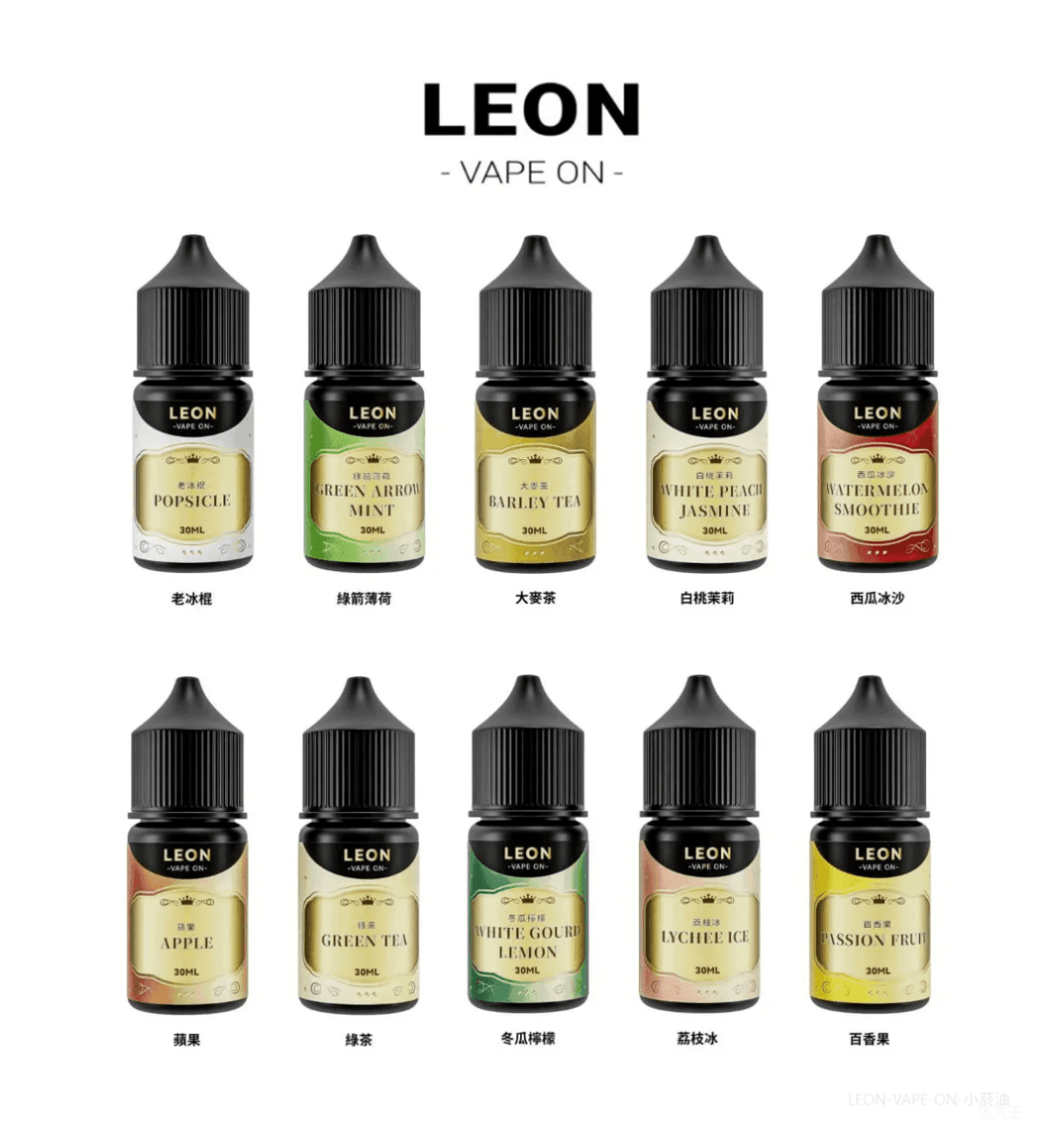 蕎麥茶, 錫蘭紅茶, 冬瓜檸檬, 草莓聖代, 白桃茉莉, 蘋果雪梨, 綠豆沙, 雪茄菸草, 冰釀綠茶, 冰糖雪梨, 葡萄柚, 木瓜牛奶, 荔枝冰, 西瓜冰沙, 百香果, 老冰棍, 薄荷青箭